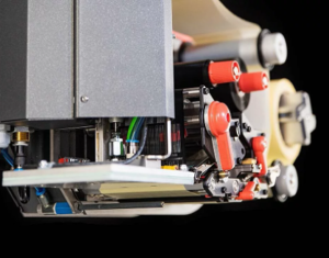 The label printing dispenser prints and labels in any installation location. Even in production environments where space is at a premium.